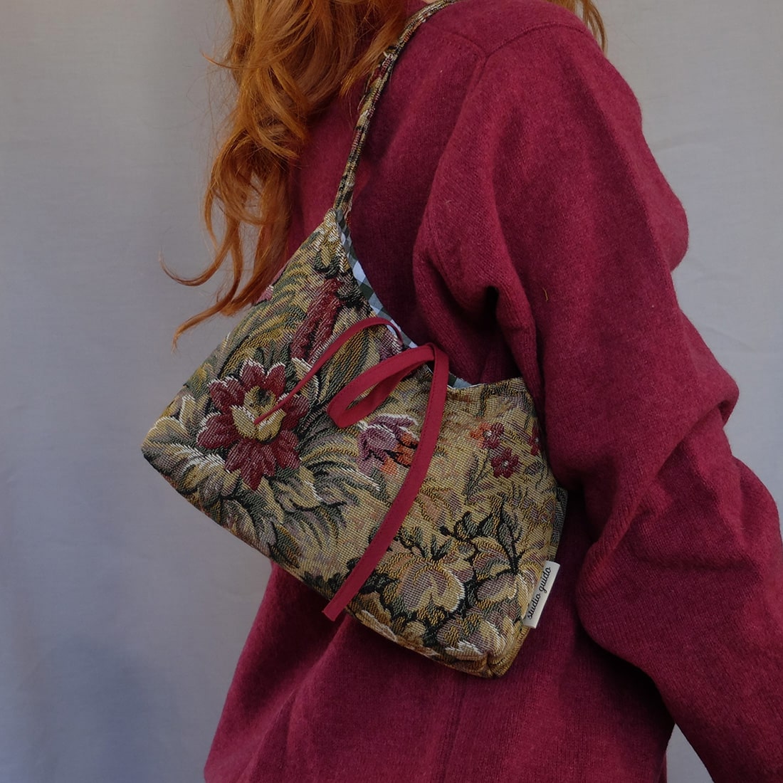 Le sac à main TAMI en tapisserie florale vintage est une pièce pleine de charme.