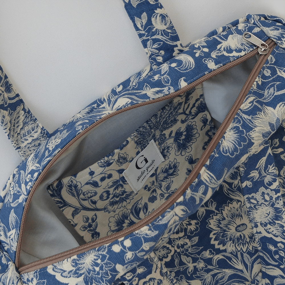 Tela: tapicería de flores color beige sobre fondo azul . Tela vintage descatalogada.