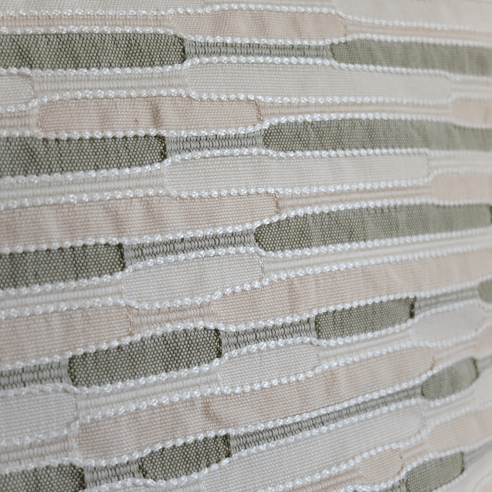 Funda de cojín de 50x50cm, confeccionada a partir de una antigua tela de tapicería, con delicadas líneas orgánicas bordadas. Los tonos beige claro y verde oliva le aportan suavidad e intemporalidad. La tela ha sido elegida cuidadosamente en Andalucía.